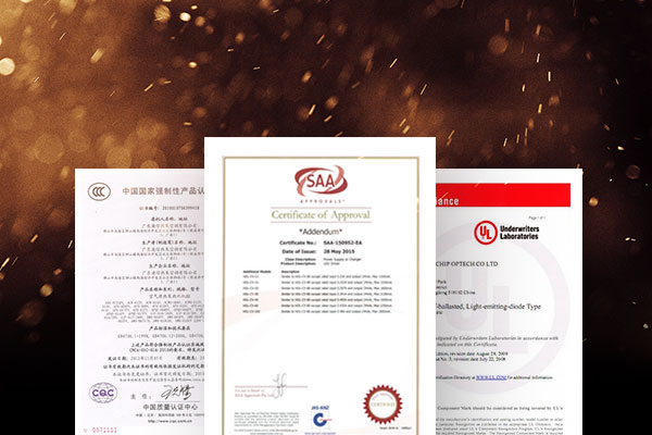 完善生产管理制度及品质管理制度,所有的光源、驱动均通过ul、3c、ce,tuv、saa等质量认证生产制程中严格把关每件产品。